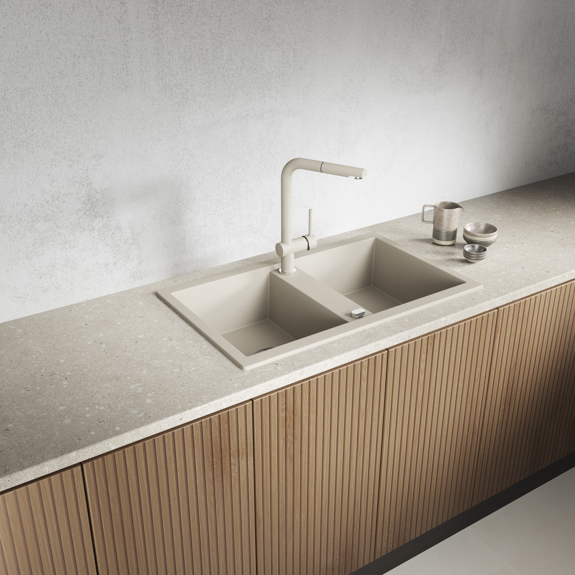 Laveo Barbados Granite Sink 2 Bowl - Beach Sand