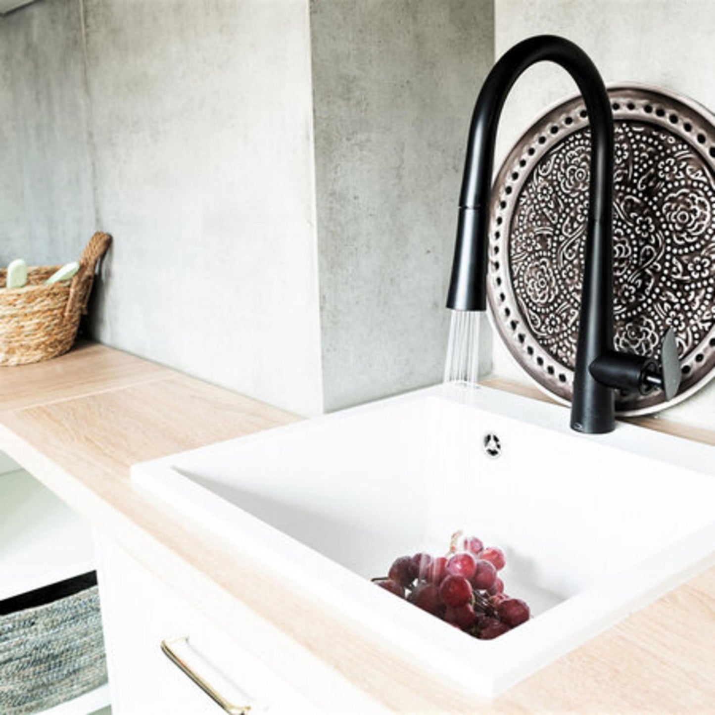 Laveo granite sinks are composed of 80% granite mixture that affects the durability of the product and 20% acrylic resin. The numerous resistance properties and simple rules of maintenance and cleaning make the sink look new for a long time.