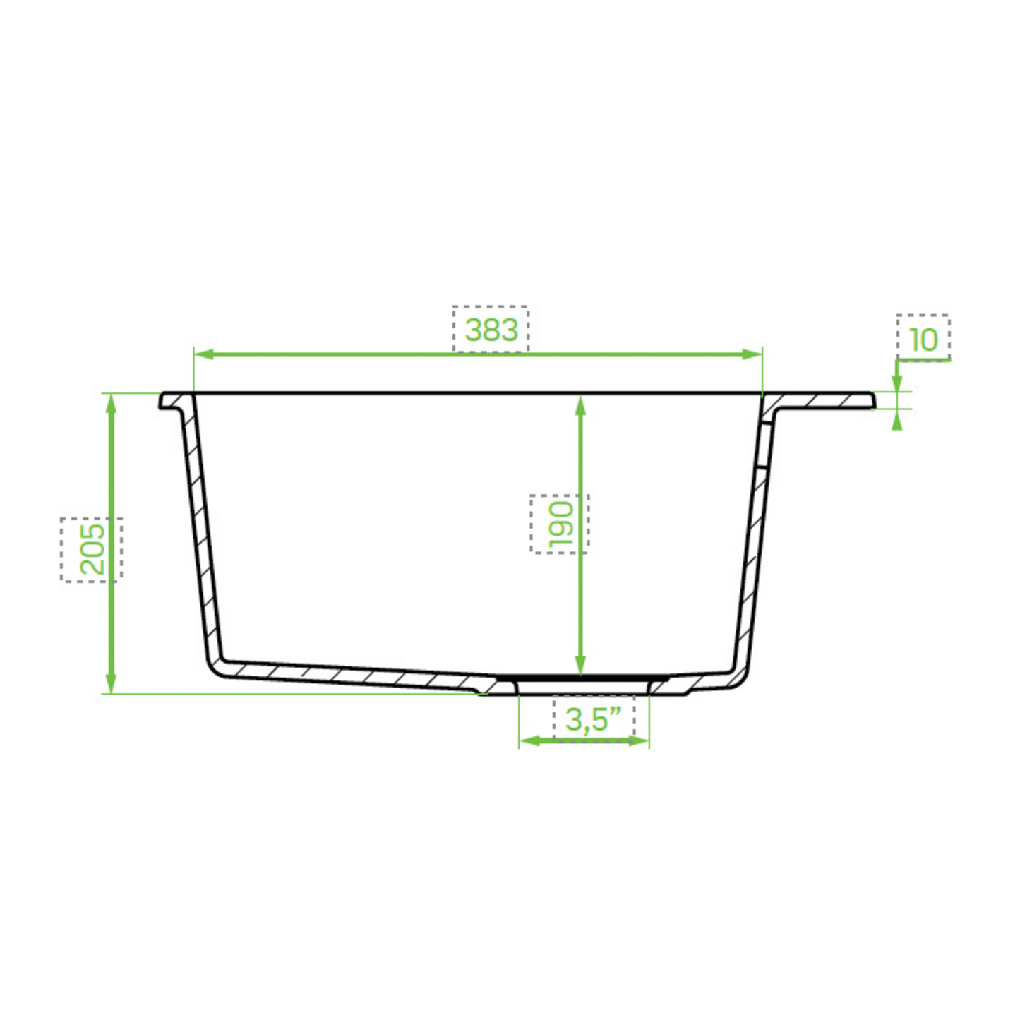 Every sink model is equipped with a functional drain trap with a dishwasher connection, an overflow to prevent overfilling of the bowl, and a 3.5” outflow with a removable strainer to protect the installation against any food leftovers.