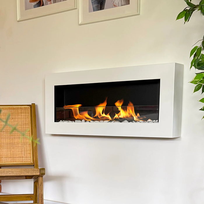 NOVAFLAME - WALL-MOUNT BIO-FIREPLACE 900X400 WITH GLASS - BOX GLOSS WHITE